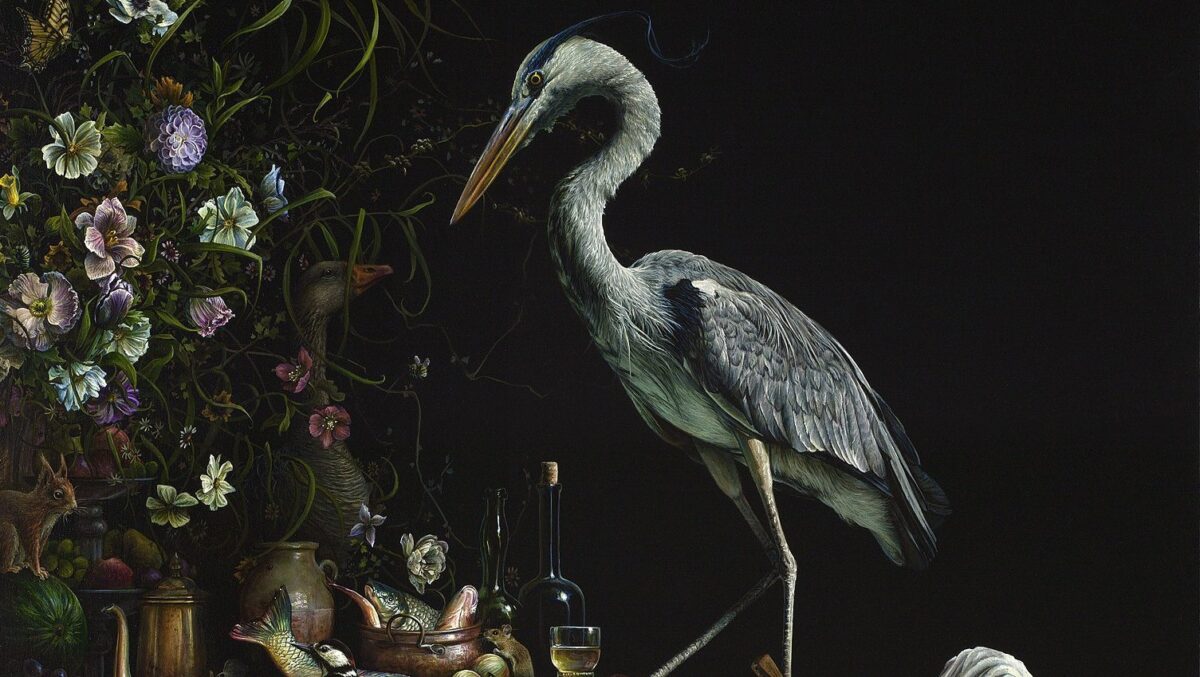 Dimensions: 70x90cm, acrylic on linenPrice: €8000Status: sold The Ravens Hour is a modern interpretation of the Vanitas tradition — a…